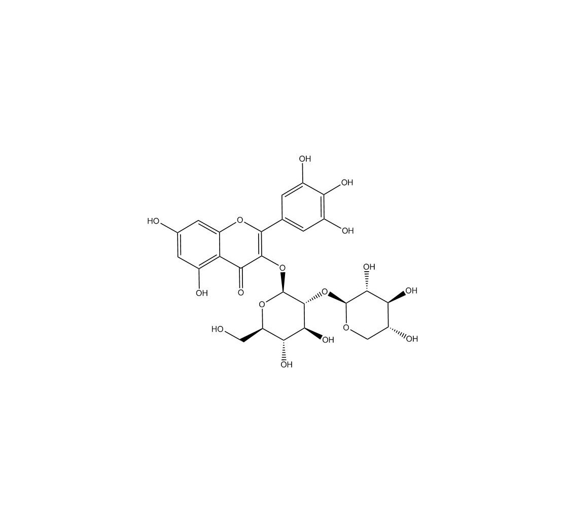 【英文別稱】Myricetin 3-O-beta-D-xylopyranosyl(1-2)-beta-D-glucopyranoside