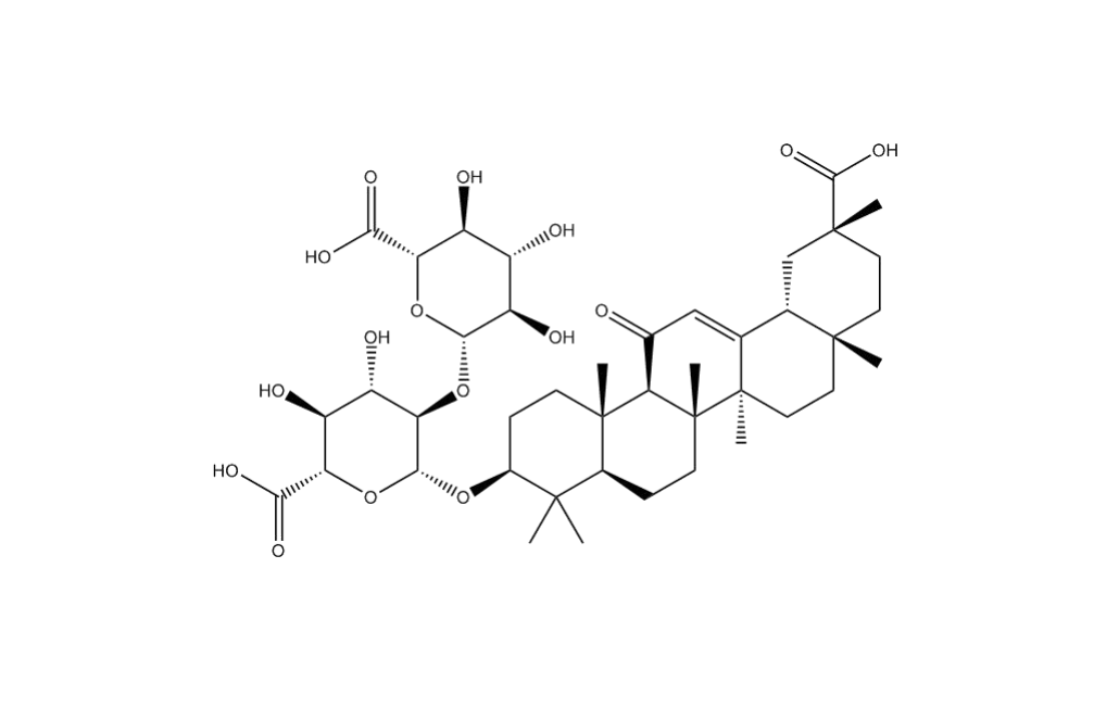 【英文別稱】 [(18α)-20β-Carboxy-11-oxo-30-norolean-12-en-3β-yl]2-O-β-D-glucopyranuronosyl-α-D-glucopyranosiduronic acid