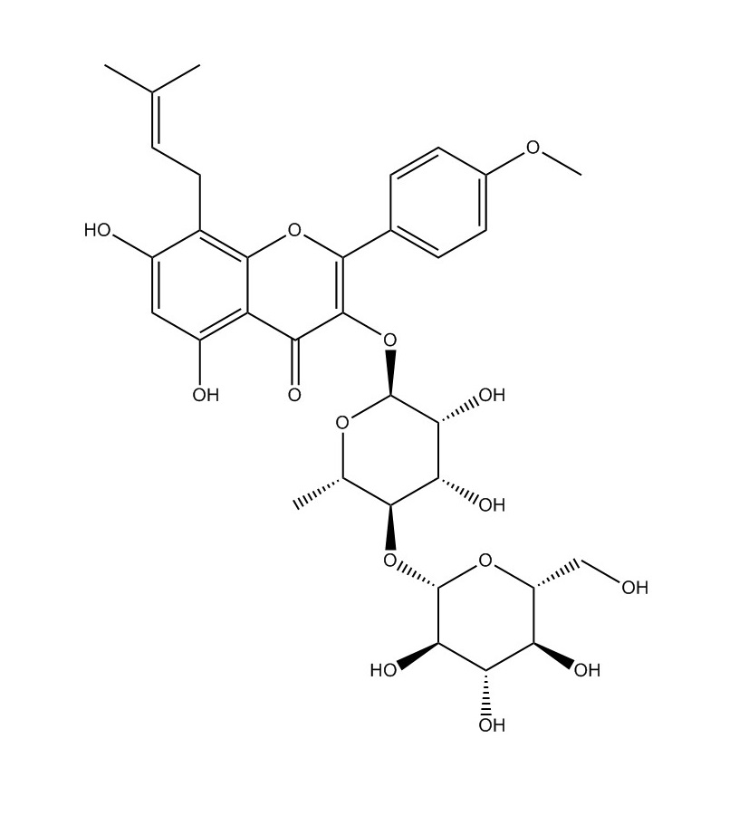 【英文別稱】 4H-1-Benzopyran-4-one, 3-[(6-deoxy-4-O-β-D-glucopyranosyl-α-L-mannopyranosyl)oxy]-5,7-dihydroxy-2-(4-methoxyphenyl)-8-(3-methyl-2-butenyl)- (9CI)